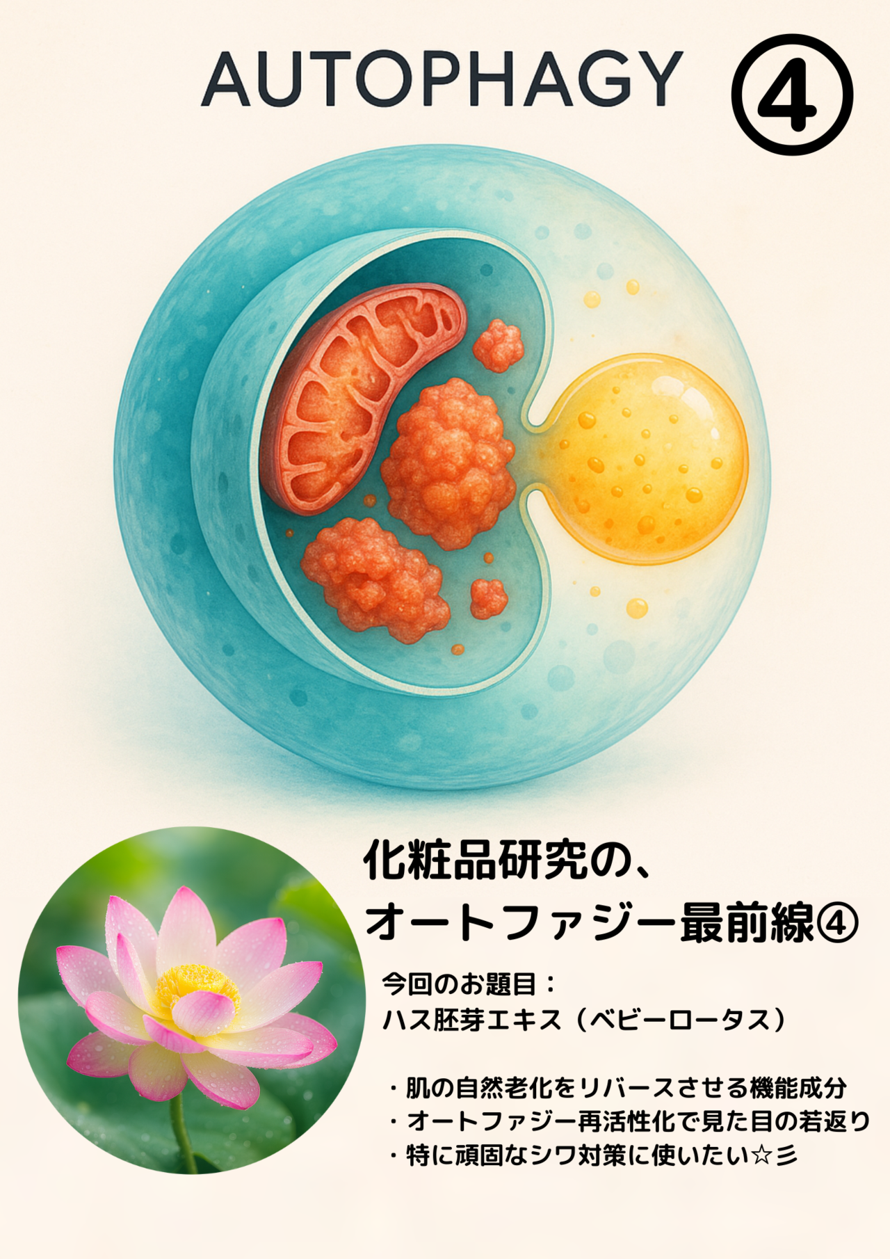 オートファジー効果も素晴らしいですが、特にシワ対策に使いたい「ハス胚芽エキス」でした♪